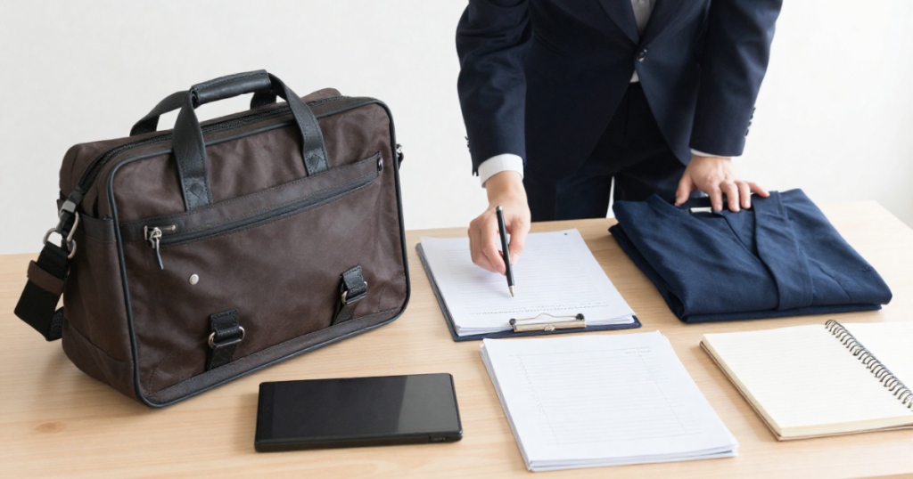 通勤用の服や靴、かばん、書類、生活リズムを整える